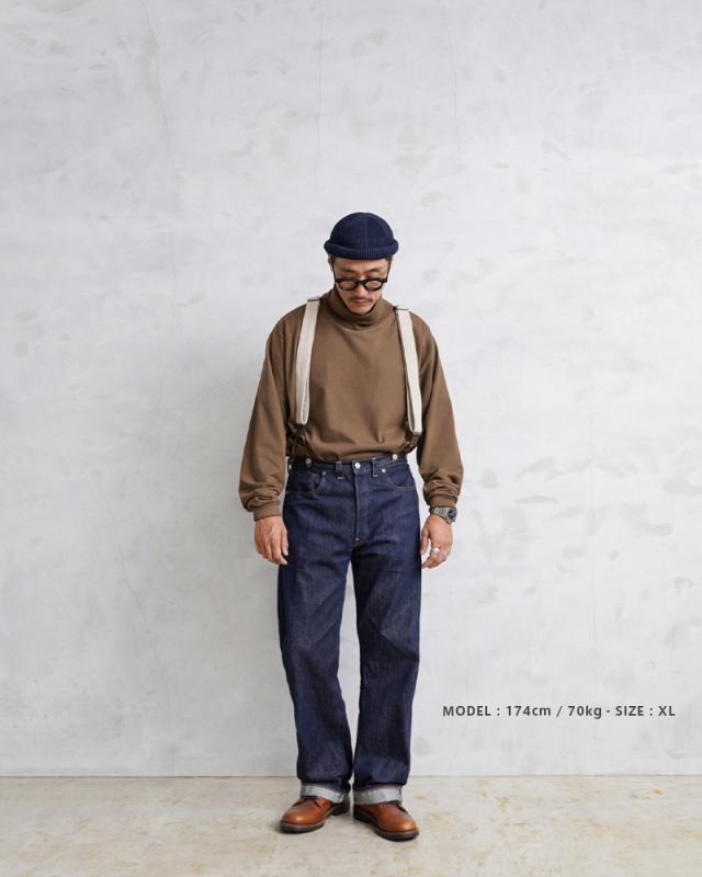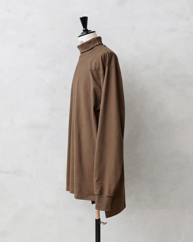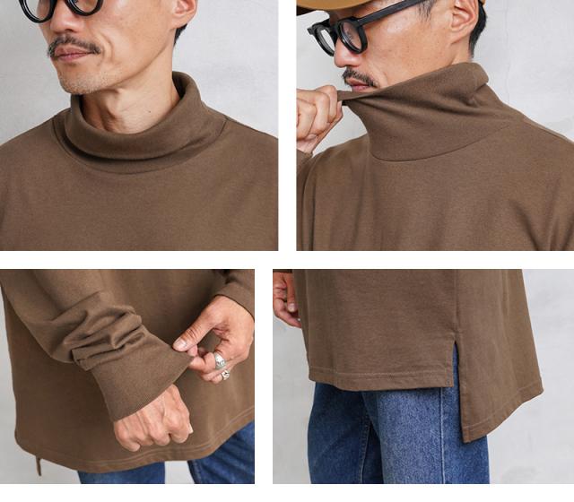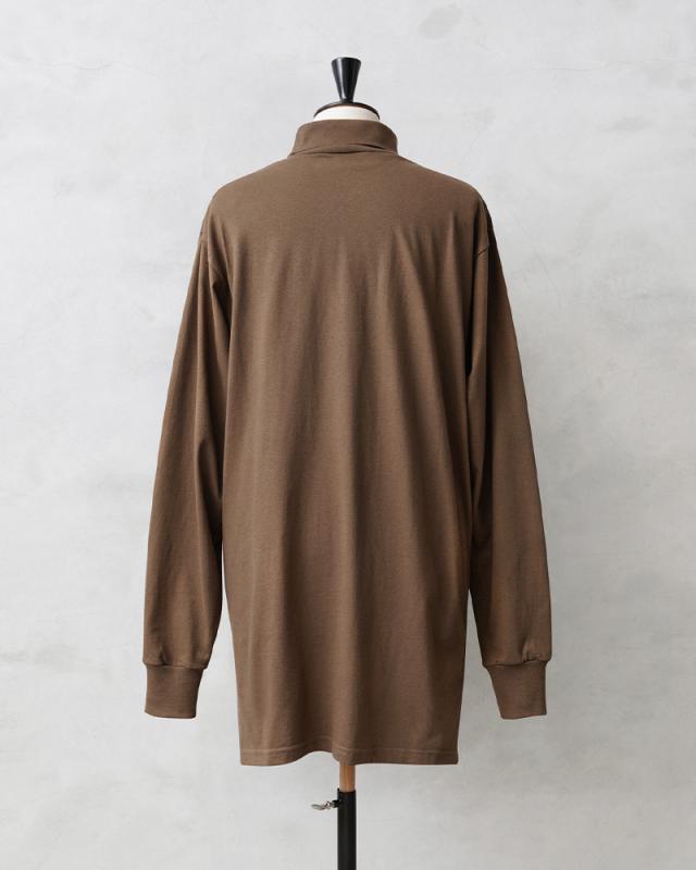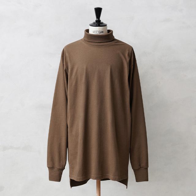 米航空母艦で各種作業を行う甲板作業員(フライトデッキクルー)が使用するトップスで、首元は1回折り返すとベストなタートルネックで、サイドにスリットの入ったロングテールデザインが裾を出して着用するのにも最適なファッション性の高いデザインです。程よく厚手でUSAコットンのようなドライ感のあるさらっとした肌触りのコットン100%素材を使用しており、首元と袖先はリブ仕様で適度にフィットします。ブラウンは航空団の機長と航空機の出撃準備や機体の維持を行う航空団の下士官の担当する部署となりますが、ファッション的にもコーディネートがしやすいカラーで落ち着いた印象を与える長袖Tシャツです。性別を問わず、1枚でもレイヤードでも色々な着こなしが楽しめるなかなか無いデザインもポイントで、新品で放出されることも少ない希少価値も高いアイテムです。