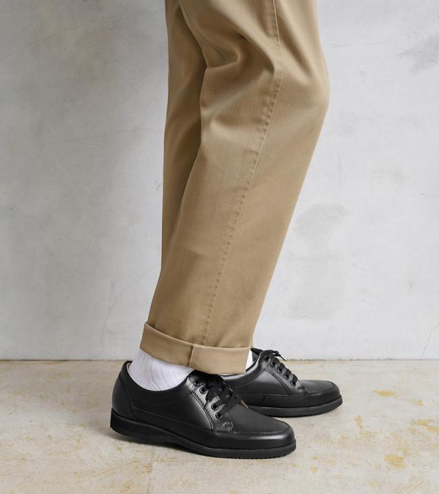 チェコ軍より2000年代に製造されたポストマンタイプのレザーサービスシューズが入荷しました。ポストマンシューズに見られるクッション性に富む柔らかいラバー製の厚いソールをしており、衝撃を吸収し、足への負担を軽減します。各国さまざま存在するミリタリーのレザーシューズですが、プレーントゥのシンプルなフォルムが多い中、こちらは非常に珍しいUチップのデザインが特徴です。