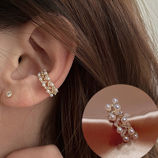 イヤーカフス レディース 30代 40代 10代 20代 イヤーカフ おしゃれ パール czダイヤ 2連 上品 大人っぽい シンプル ゴールド 片耳用 プレゼント ギフト お祝い プチプラ