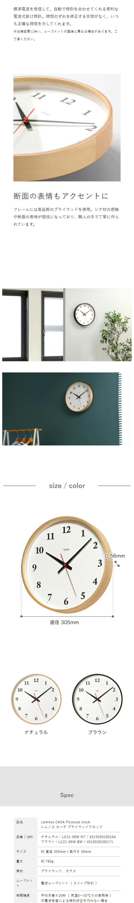 [ Lemnos Plywood clock LC21-06W ]