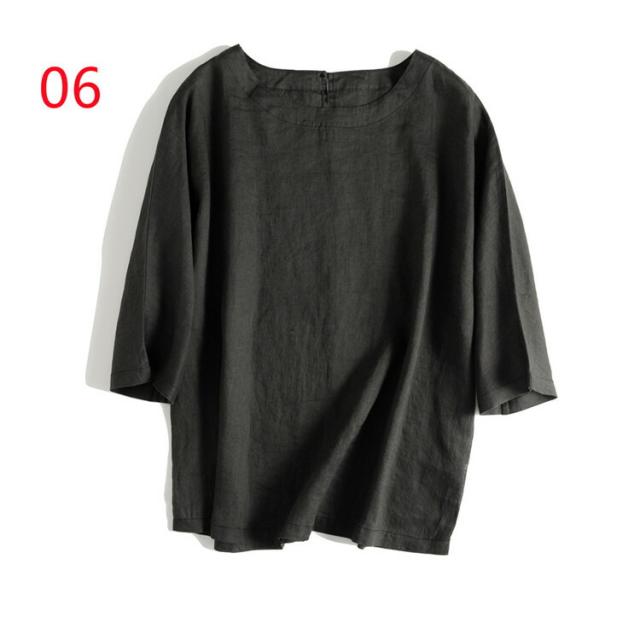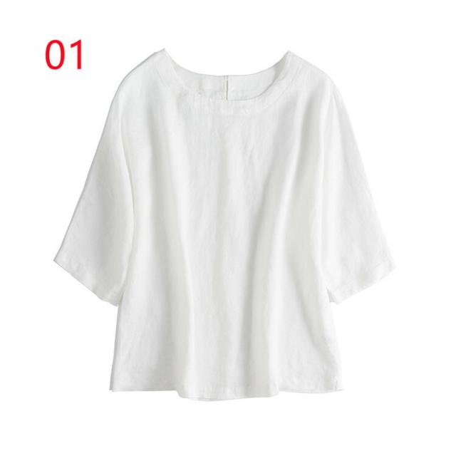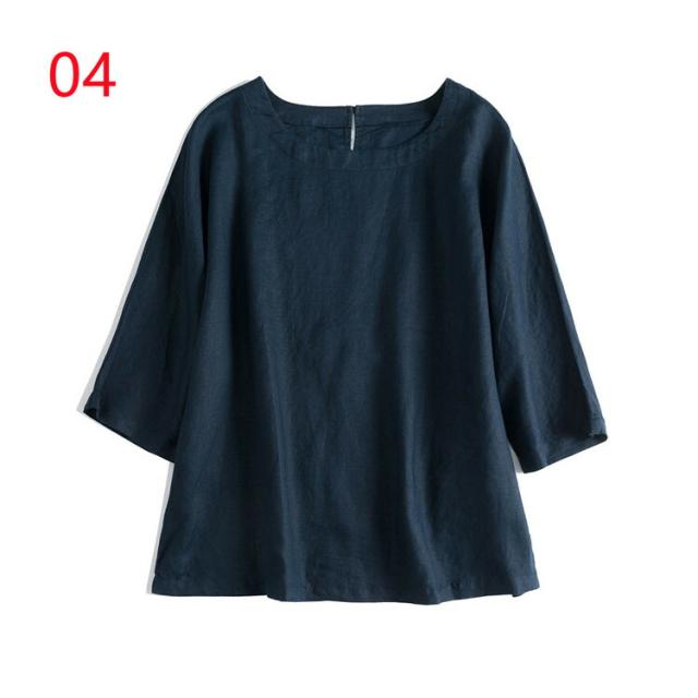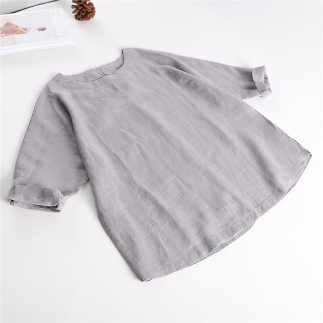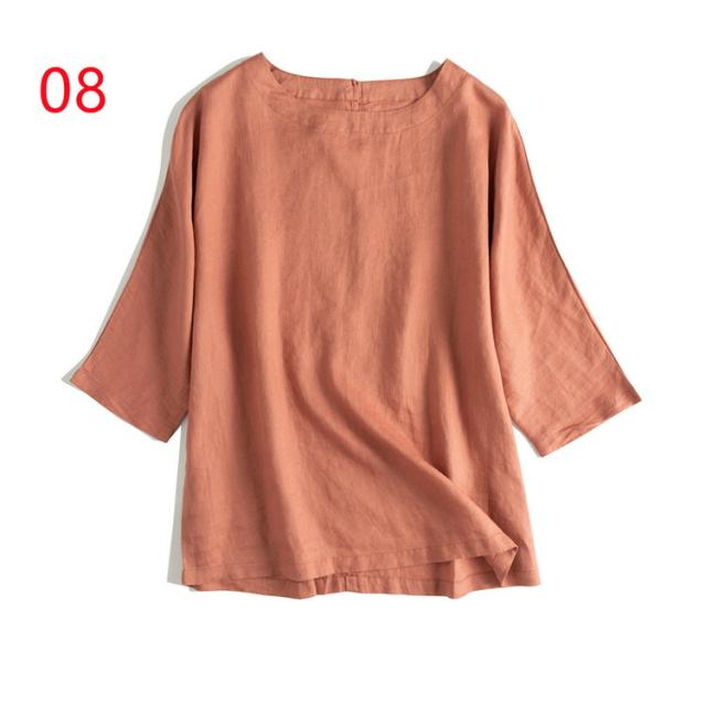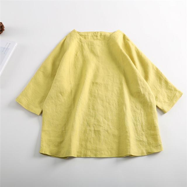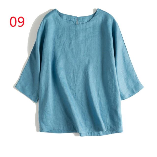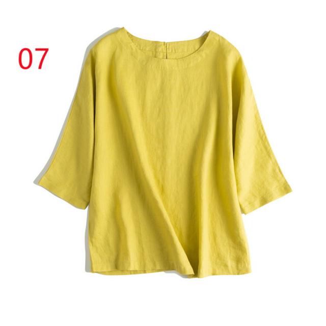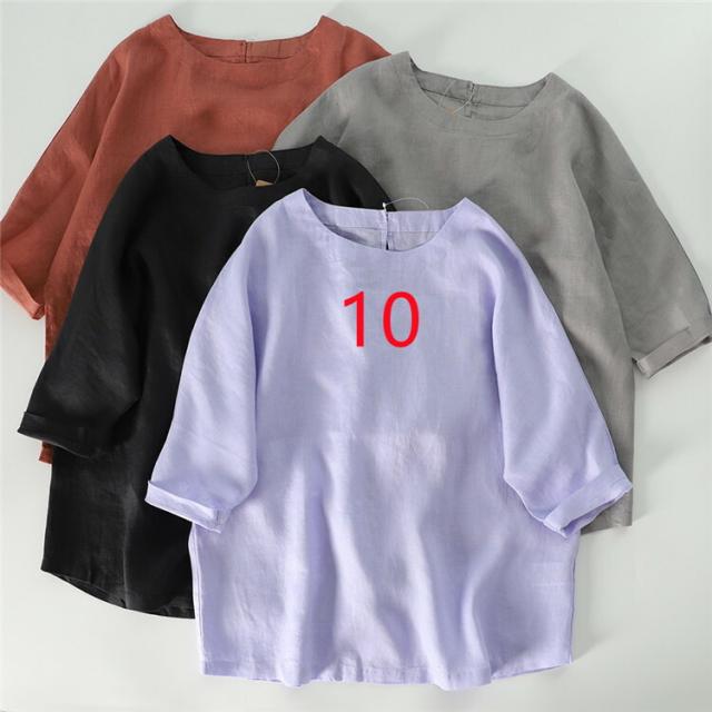 通気性が良い シャツ ブラウス 大きいサイズ 10colorsシャツ ブラウス 亜麻ブラウス レディース 七分袖 亜麻 リネン バックボタン シンプル きれいめ