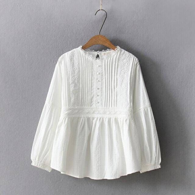 sweet系超かわいいシャツブラウス森ガール レース トップス 長袖 総レース 立ち襟 シースルー シャツ ブラウス ハイネックトップス