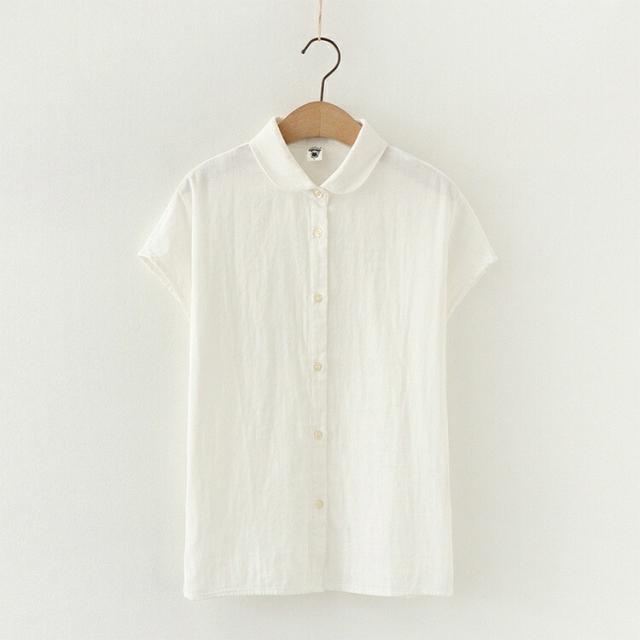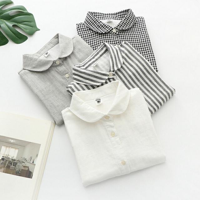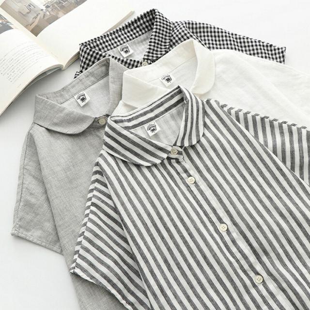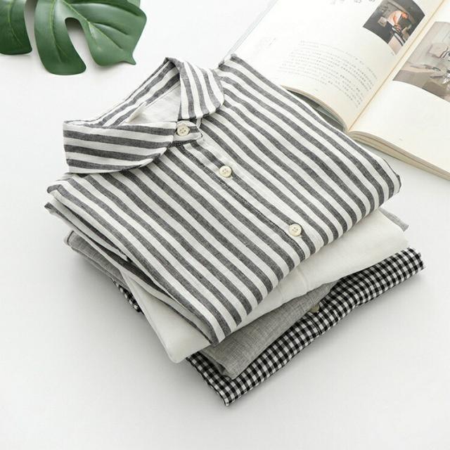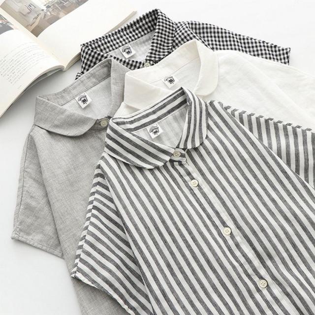 綿麻風 リネン風 チェックストライプ 無地 シャツ 2重ガーゼ シャツ レディース トップス ブラウス カジュアルシャツ 半袖 トップス ナチュラル オフィス ビジネス フォーマル 入学式
