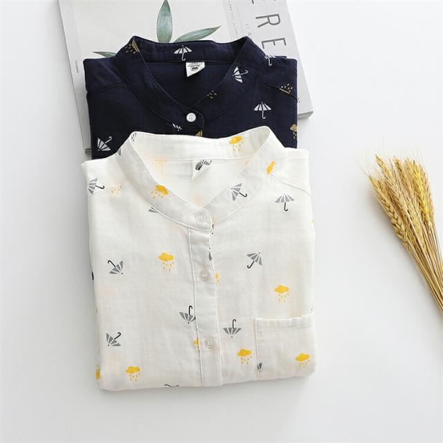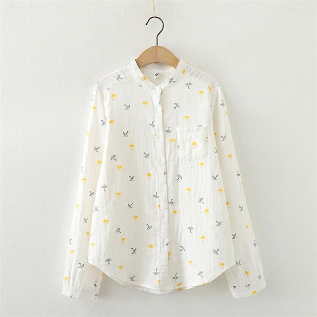 綿麻風 リネン風 立ち襟 角襟 花柄シャツ 2重ガーゼ シャツ レディース トップス ブラウス カジュアルシャツ 長袖 小花 花柄トップス ナチュラル オフィス ビジネス フォーマル 入学式 清新感いっぱい