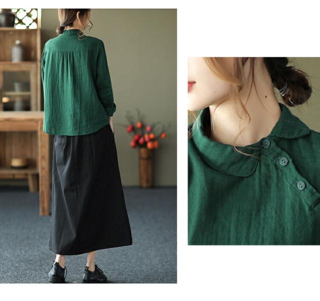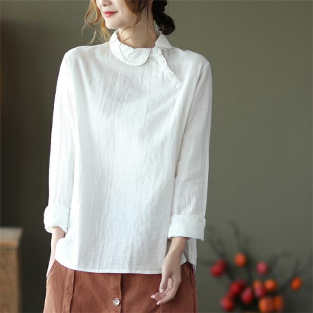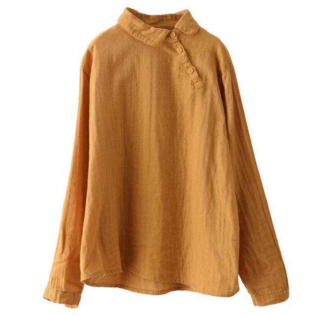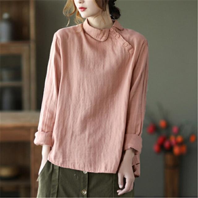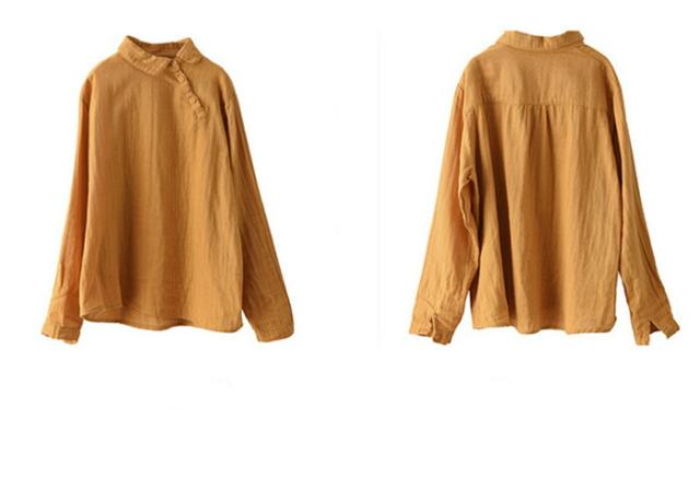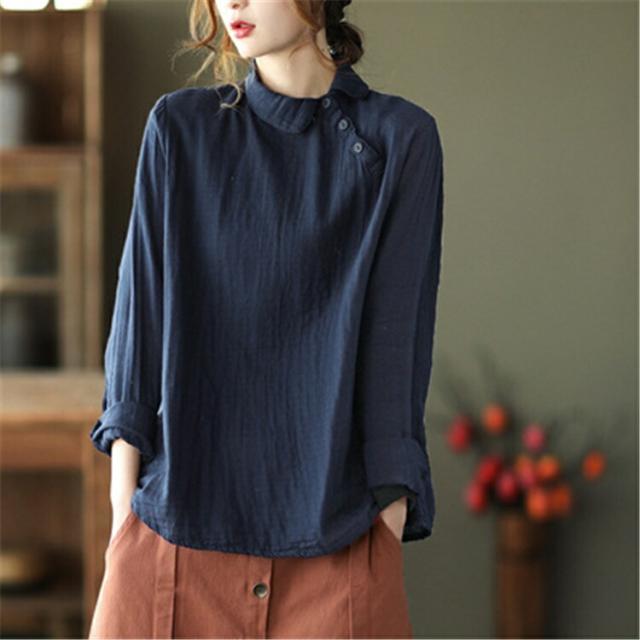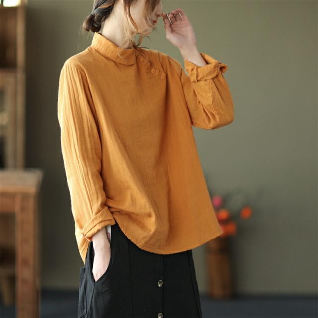 ブラウス中国風 チャイナ風 シャツ 無地シャツ 二重ガーゼ 薄手 ゆったり ゆるシャツ トップス シャツアウター ライトアウター