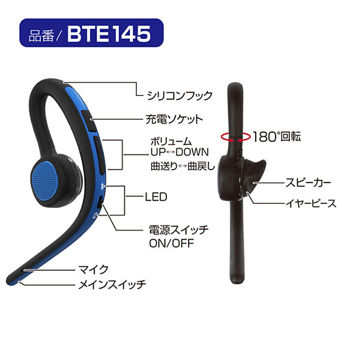 セイワ Bluetoothワイヤレスイヤホンマイク ブルー 規格Ver.5.2 ハンズフリー通話 通話特化モデル ノイズ対策 耳掛け型 BTE145