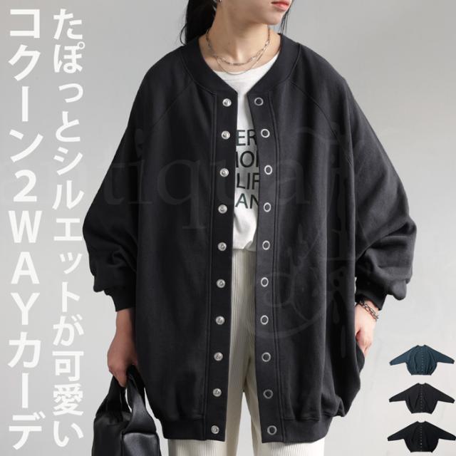 【検索ワード】コクーン2WAYカーデ カーディガン レディース トップス 長袖 綿100 裏毛 無地 前後 2WAY コクーン ゆったり 前開き 羽織り スナップボタン リングドット スウェット トレーナー リブ ラグランスリーブ アウター カーデ コクーンカーデ 裏毛カーディガン シンプル 綿 コットン オーバーサイズ 体型カバー ビッグシルエット 大きいサイズ antiqua アンティカ 大人 おしゃれ 10代 20代 30代 40代 50代 60代 春 秋 冬 お洒落 カジュアル かわいい かっこいい あんてぃか