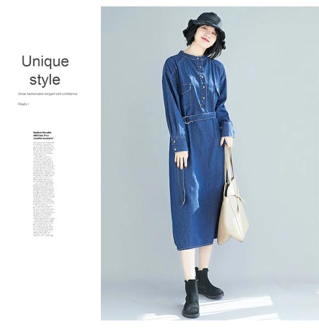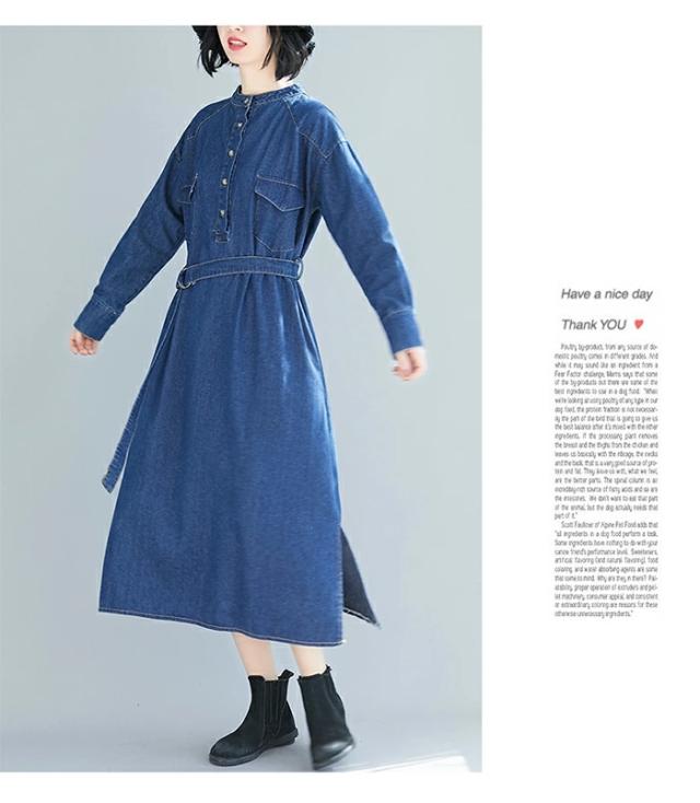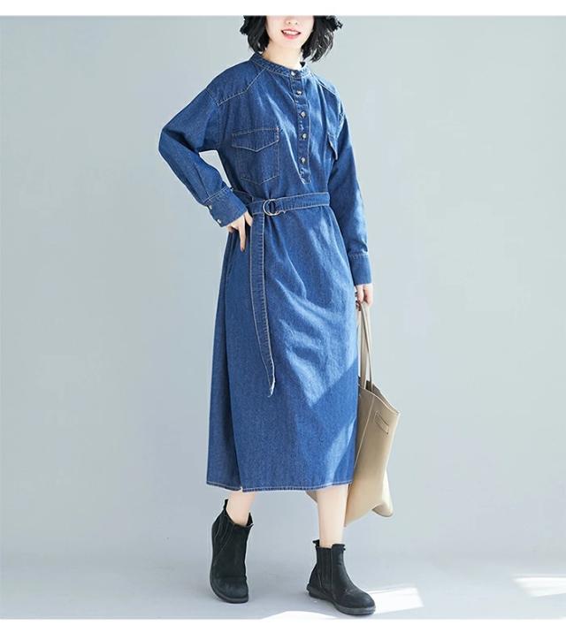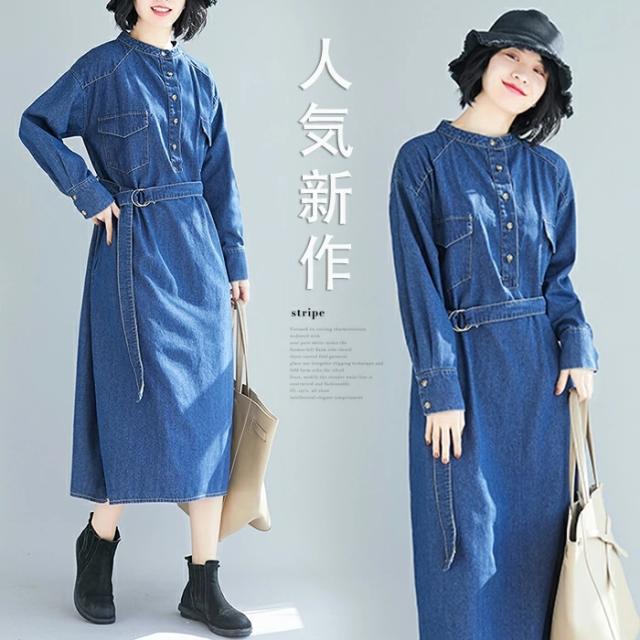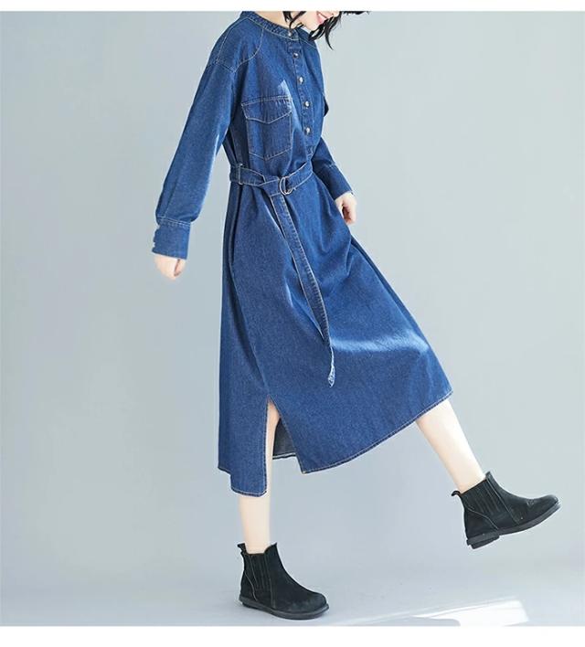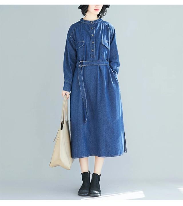 ワンピースデニム レディース ワンピース デニム シャツ ワンピ ウェスト紐 ひざ下丈 長袖 スリット 大きいサイズ シンプル おしゃれ 大人 可 通勤 40代 30代 20代