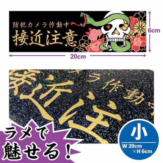 yst 6 小 切り文字 カッティング ステッカー 防犯カメラ作動中 接近注意トラック デコトラ 大型トラック 防水 ラメ 金 デカール ドクロ ヘビ 和柄 菊花紋章
