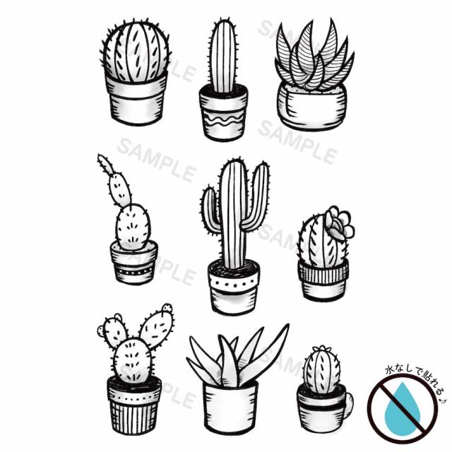 opt 14 水なしで貼れる 2枚組 タトゥーシール fake tattoo ボディシール ワンポイント シンプル モノクロ サボテン おしゃれ フェス イベント ライブ 韓国