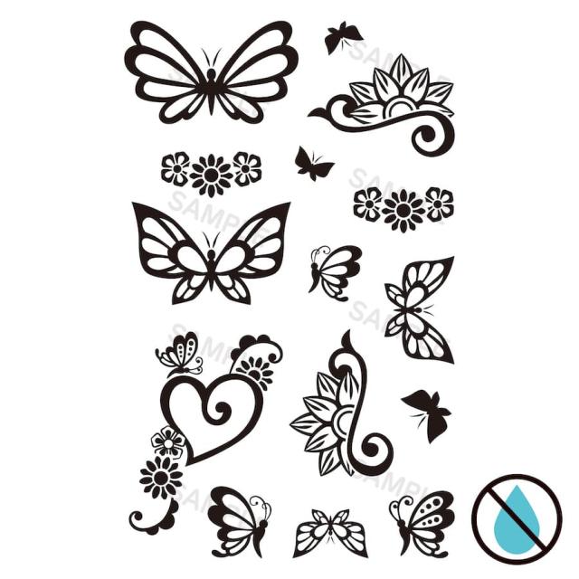 opt 3 水なしで貼れる 2枚組 タトゥーシール fake tattoo ボディシール ワンポイント シンプル 蝶 おしゃれ フェス イベント 野外 パーティー 韓国