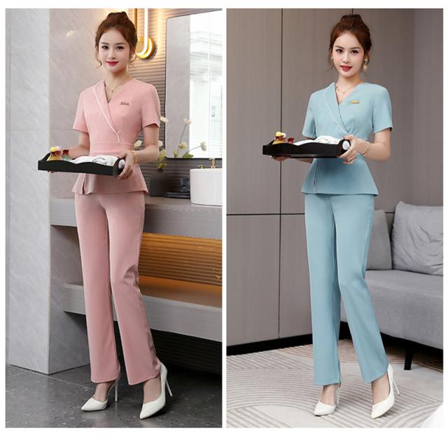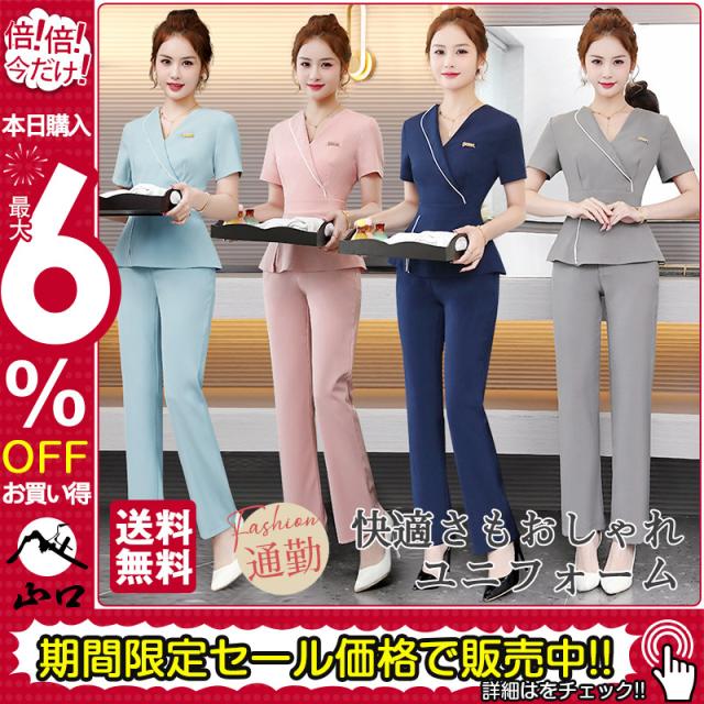 ユニフォーム エステ サロン制服 上下セット レディース 化粧品販売 半袖ズボン ホテル ネイル 美容 歯科 医療系作業服 クリニ
