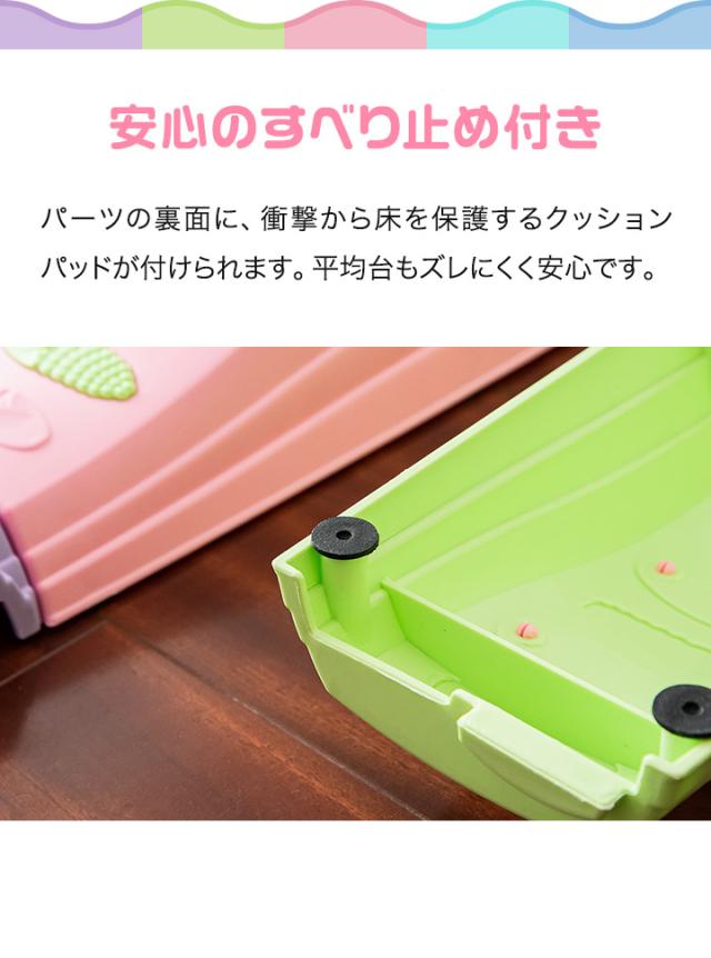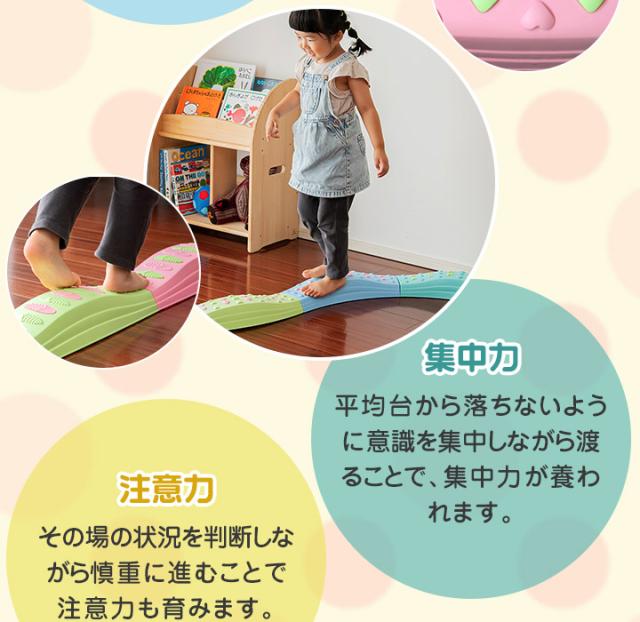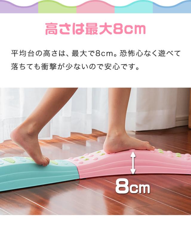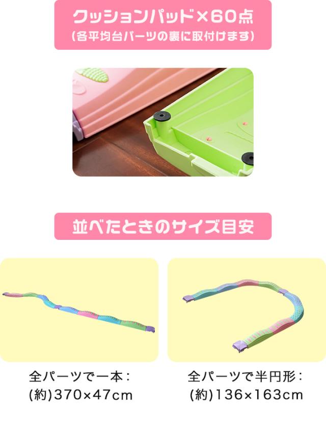 | 特記事項: ・不安定な置き方をしないでください。転倒してケガや破損の原因になります。 ・平均台がしっかりとつながれているか確認してからお使いください。使用中にガタついた場合はセットし直してください。 |