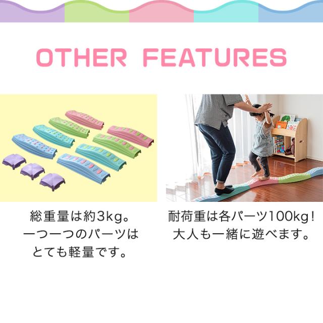 バランス平均台 11点セット パステル ウェーブ でこぼこ 綱渡り 川石飛び 遊び おもちゃ バランスボード ブロック ストーン 室内遊具 アスレチック 安全 体幹 集中力 トレーニング おうち時間 バランス感覚 平均台 知育 RiZKiZ 1年保証 送料無料