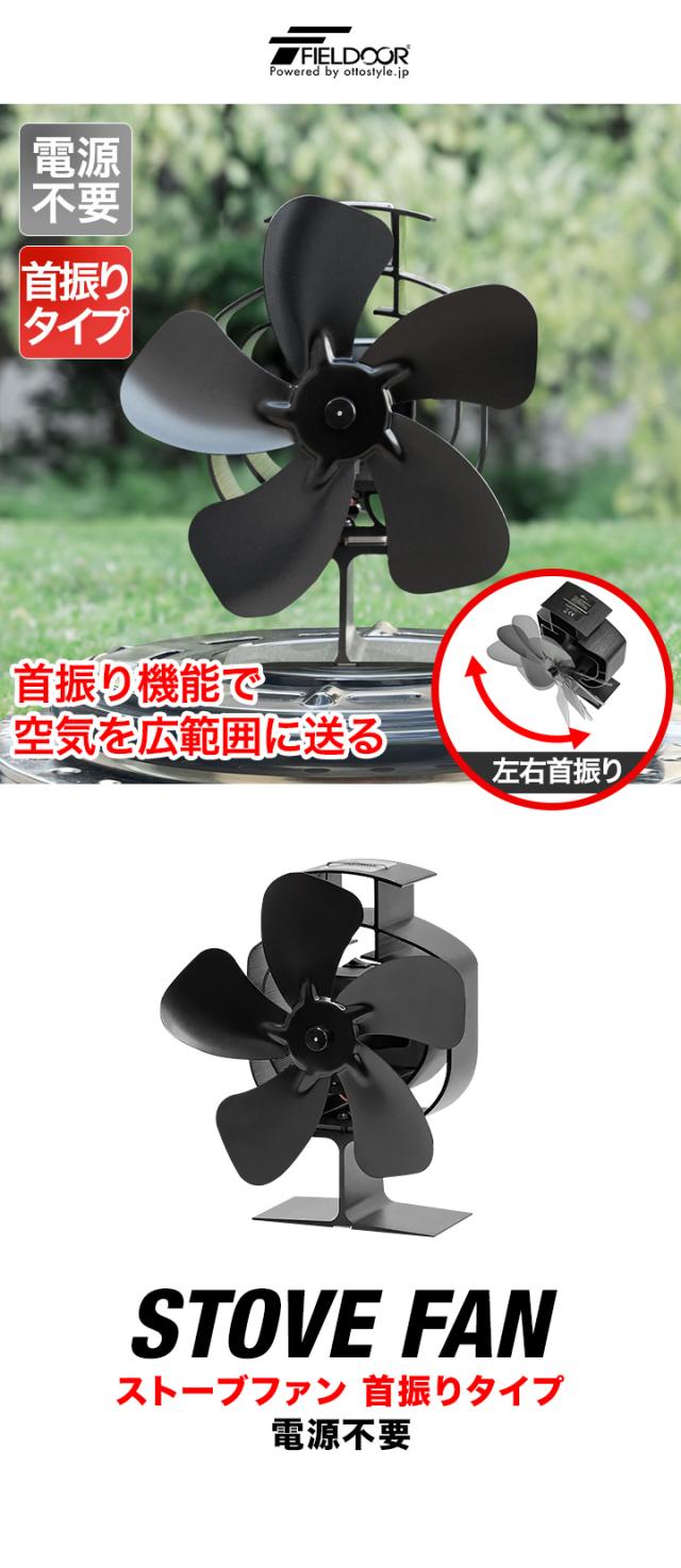 FIELDOOR ストーブファン 首振りタイプ 5枚羽根 直径約19cm エコ 電源不要 省エネ 薪ストーブ・石油ストーブ・ガスストーブなどに。遮熱版・加熱保護プレート付き 静音 空気循環 暖房 エコストーブファン 火力熱炉ファン アウトドア 1年保証 送料無料