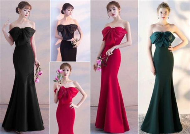 キャバドレス ロングドレス キャバドレス 可愛さたっぷりの胸元ビッグリボン セクシーな肩魅せデザインフレアーロングドレス 全3色(黒赤緑)