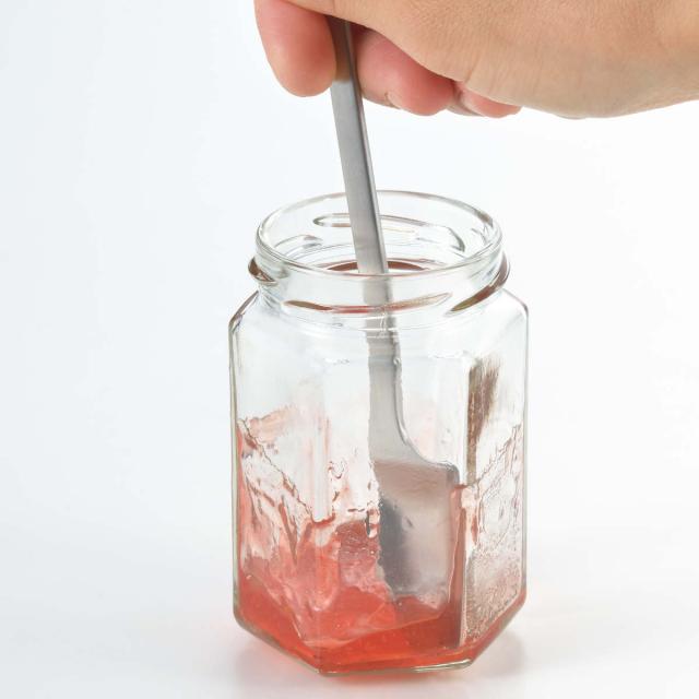 瓶の底に残ったジャムや瓶の肩についたジャムをキレイにすくい取れるように設計されています。ビンの底や容器のフチにしっかりフィットし、残りわずかなジャムも余すことなく取り出すことができます。