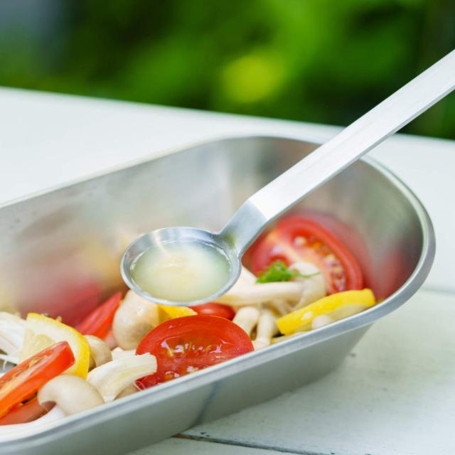 料理の味付けをする上で欠かせない計量スプーンです。小さじ1杯、5mlが量れます。手に持った時に皿が水平になるように設計されているので、量る・すくうといった作業がしやすくなっています。普段の調理だけでなく、お菓子作りやコーヒーを入れるときにも便利に使えます。