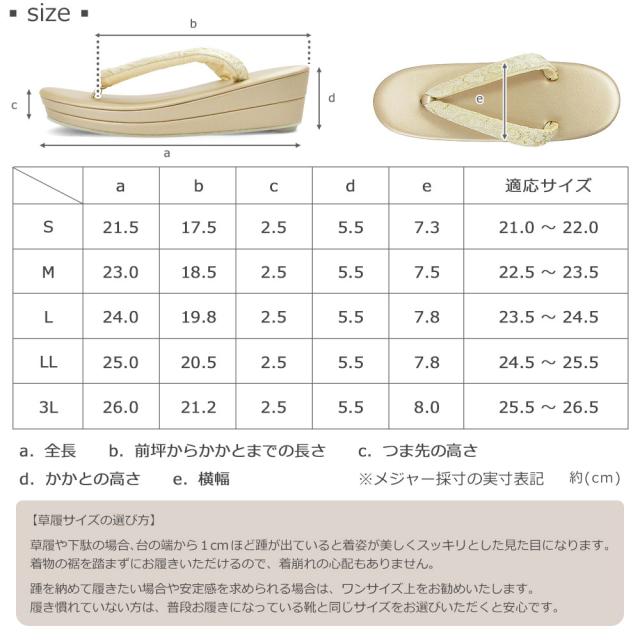 セットの草履には、S〜3Lと幅広いサイズをご用意いたしました。