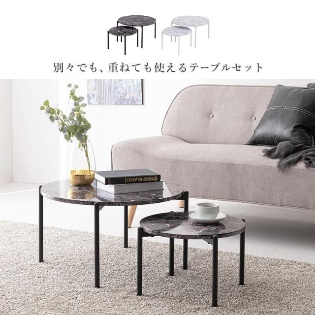 ローテーブル ネスト 大理石 丸 一人暮らし モダン リビング ソファ スチール コンパクト 丸型 軽い 小さめ スリム 座卓 おしゃれ セット 2個 ミニ アイアン