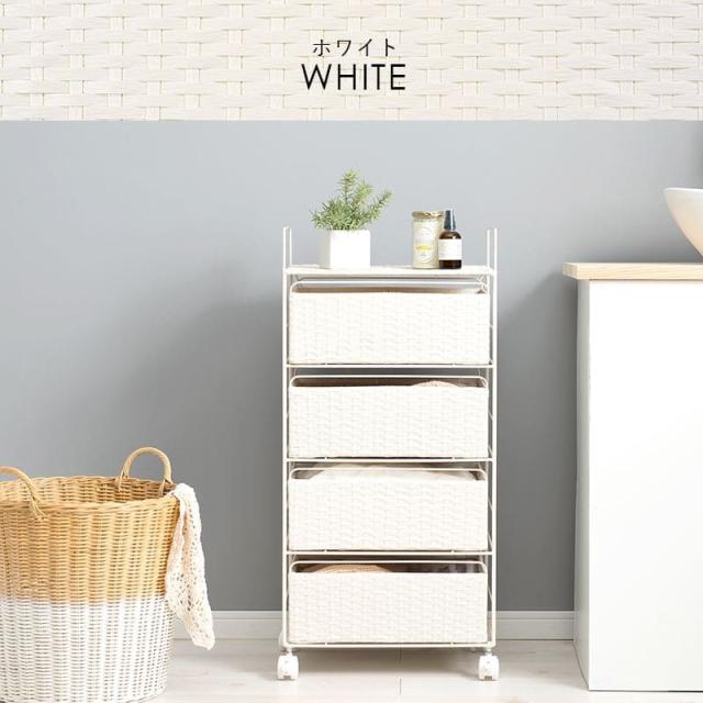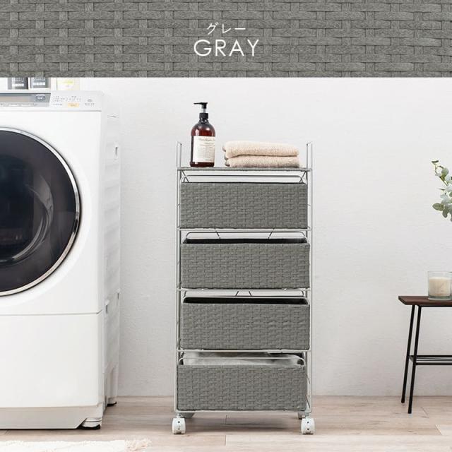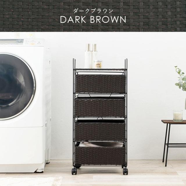 ランドリーチェスト ラタン 4段 引き出し 幅40 奥行30 スリム ランドリー収納 キャスター 籐 ワゴン カゴ 収納 薄型 ランドリーラック おしゃれ ロータイプ