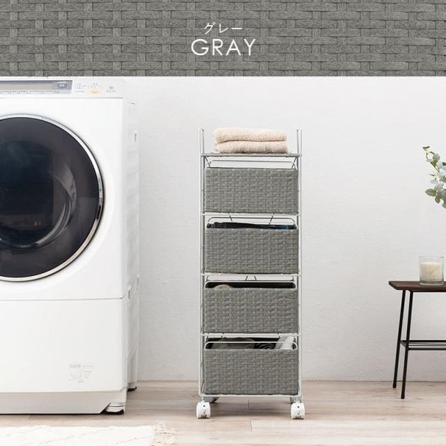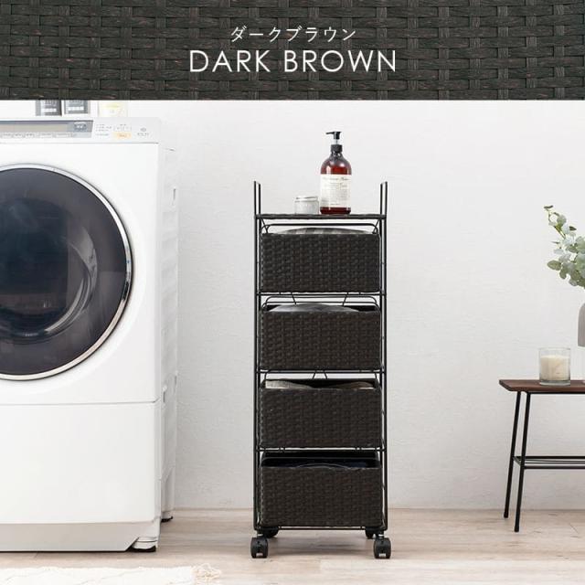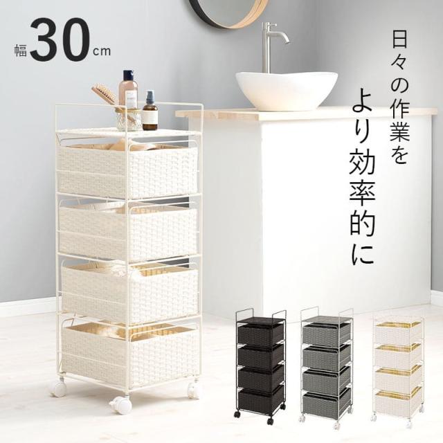 ランドリーチェスト ラタン 4段 引き出し 幅30 奥行30 スリム ランドリー収納 キャスター 籐 ワゴン カゴ 収納 薄型 ランドリーラック おしゃれ ロータイプ