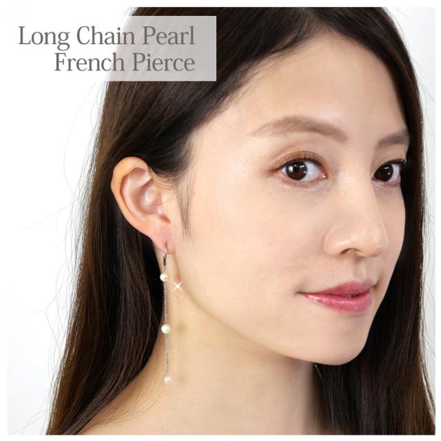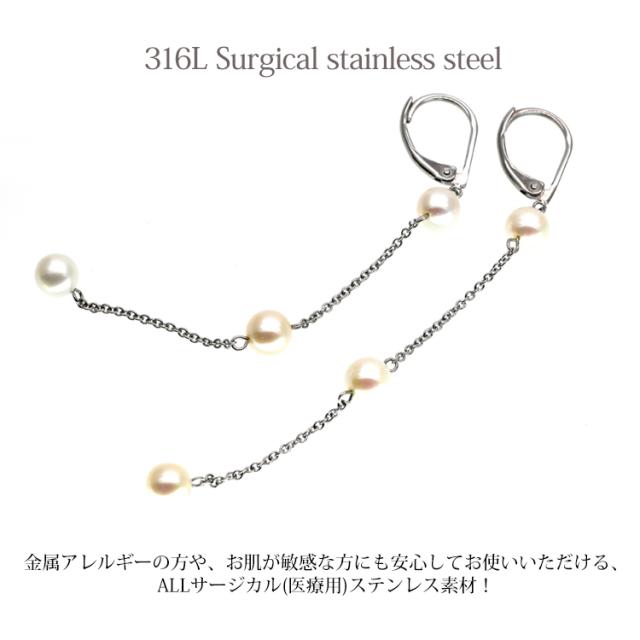 金アレ対応 [EMBELLIR] ステンレスピアス ロングチェーンパールフレンチフックピアス ジャーマンフックピアス 両耳用 真珠 サージカルステンレス
