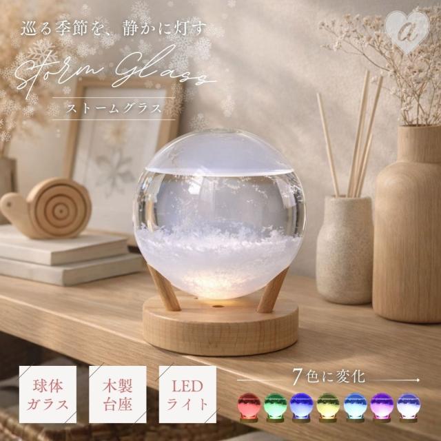インテリア ストームグラス 球体 LED 丸 台座付き 置物 天気 晴雨 グラス ガラス 天候 気温 ウェザー 飾り 結晶 気象 季節 硝子 リビング 玄関 北欧 かわいい プレゼント 贈り物 お祝い storm glass ストームガラス アンティーク デザイン オブジェ おしゃれ 大人 デザイン