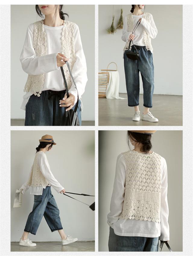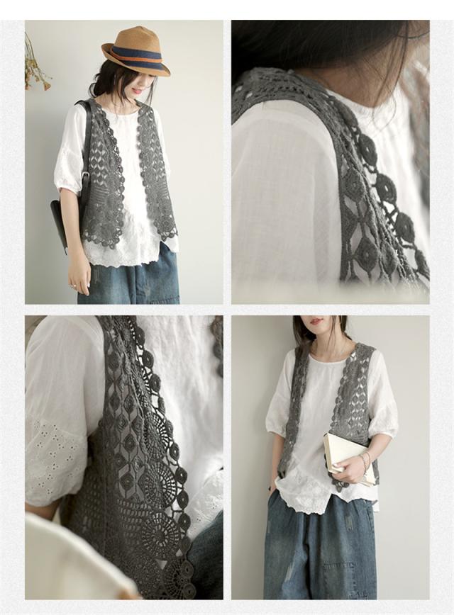 ベスト レディース 袖なし 春 夏 秋 ジレベスト ジレ レース ノースリーブ 前開き 薄手 ベスト 羽織り ショート丈 花柄 透