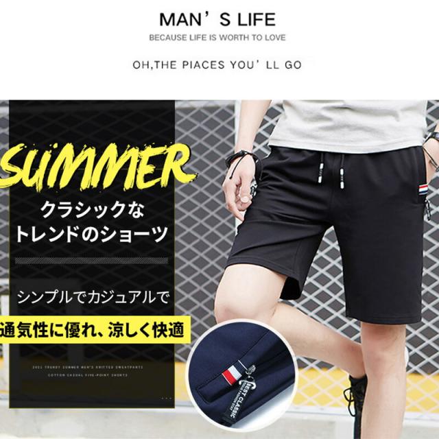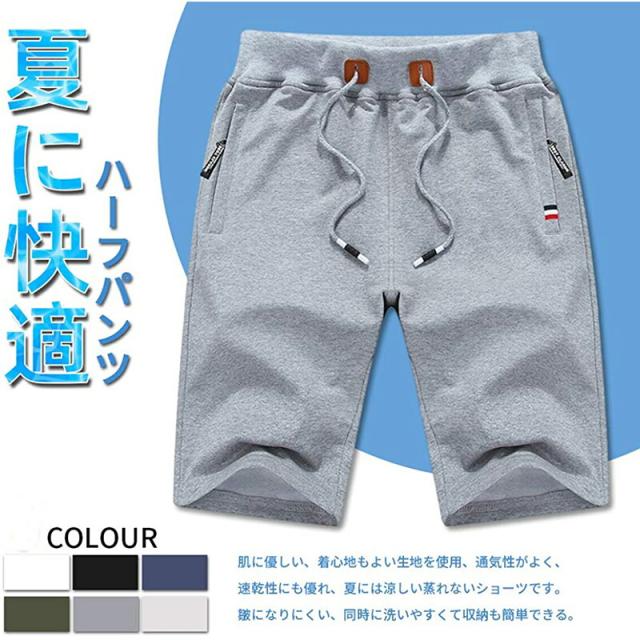 ハーフパンツ メンズ カジュアル 半ズボン 5分丈 短パン 通気 無地 ファッション 夏 調整紐 通気 半ズボン