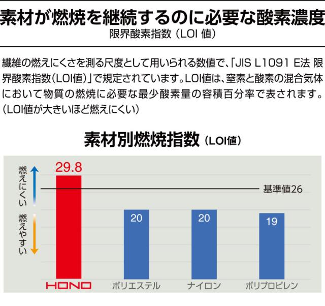 村上被服のHONOシリーズは、JISの規格にのっとった各種試験の基準をクリアしており、難燃性の評価には自信があります!
