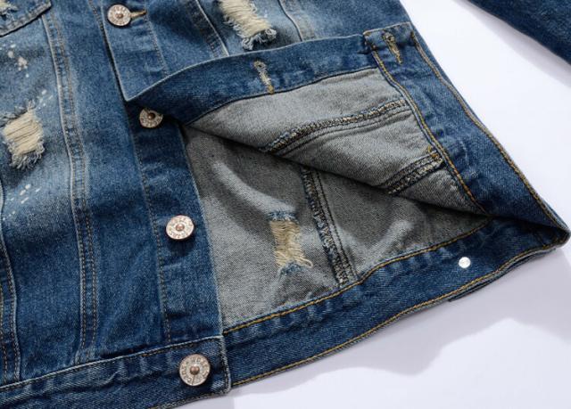 メンズ デニムスタッズ付きジャケットブルゾンスリム アウター カジュアルアウター ジャケットスリムダメージ加工 Gジャン M-5XL