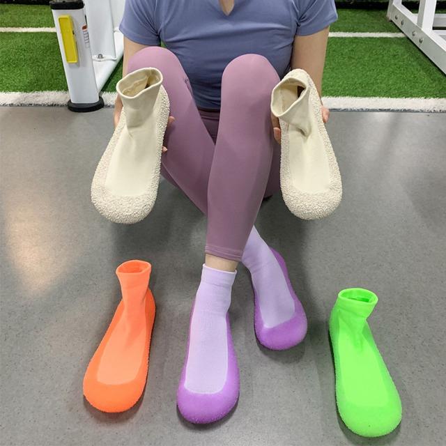 ソックスシューズ 蛍光色 滑り止め 柔らか 通気性 軽量 伸縮性 靴下 ルームシューズ 室内室外兼用