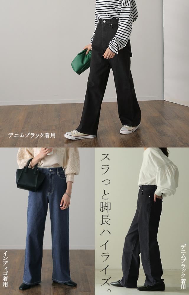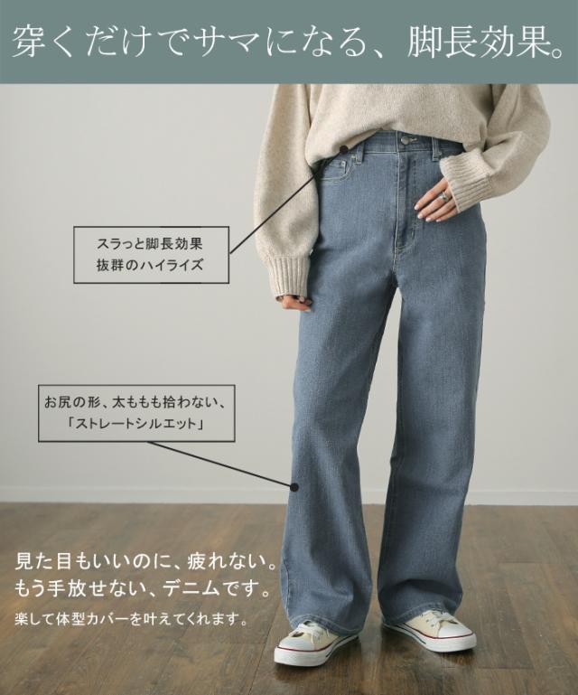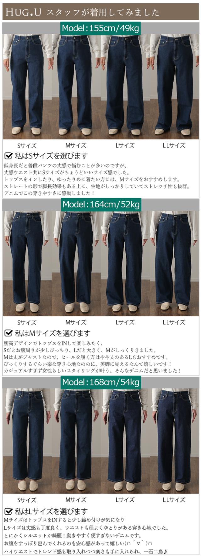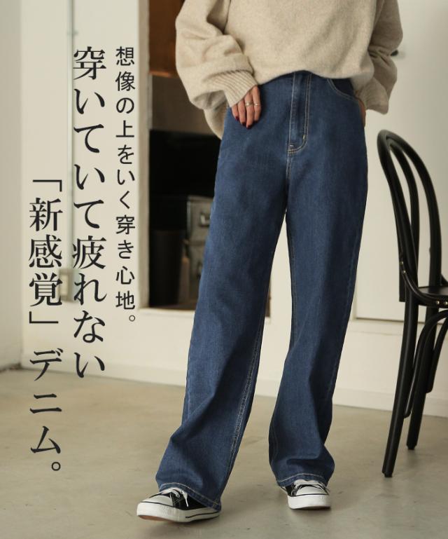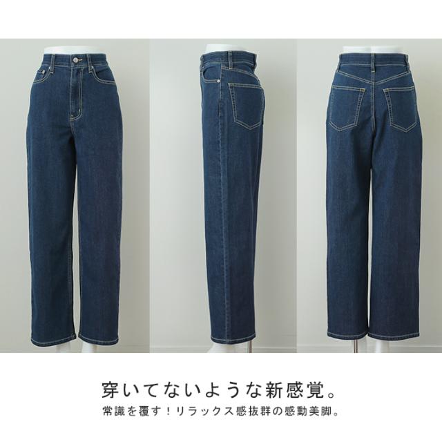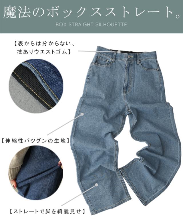 NEW!「新 感 覚」 ハイライズ デニム パンツ デニムパンツ レディース ワイドパンツ ワイド 大きいサイズ ジーンズ ジーパン ボトム 体型カバー ボトムス ストレート ズボン ゆったり ハイウエスト 伸びる ゴム ストレッチ 美脚 脚長 HUG.U 夏 秋新作