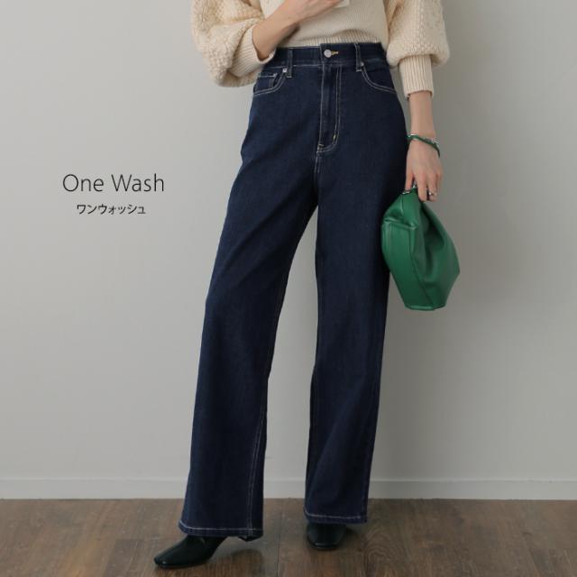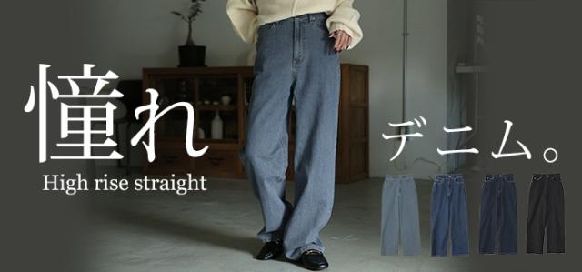ストレートシルエットが綺麗なハイウエストデニムパンツです。