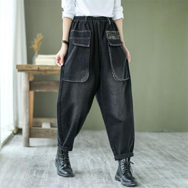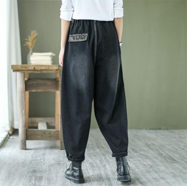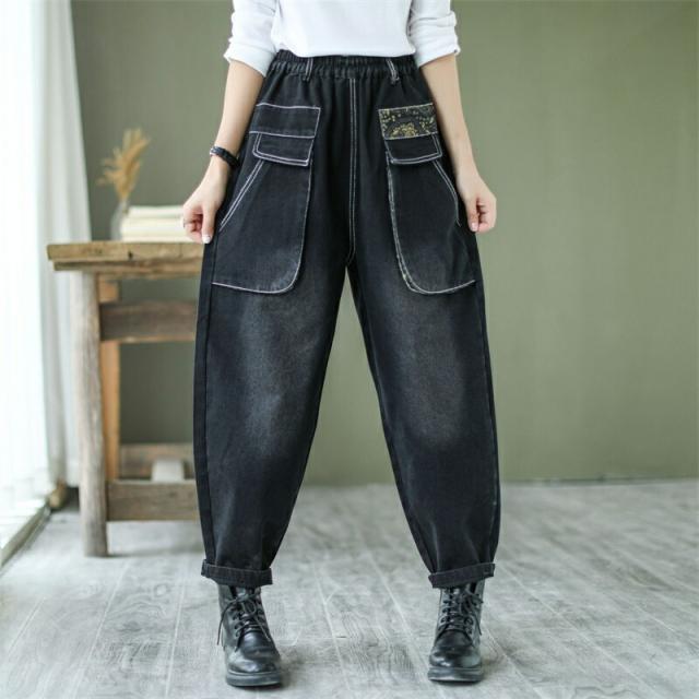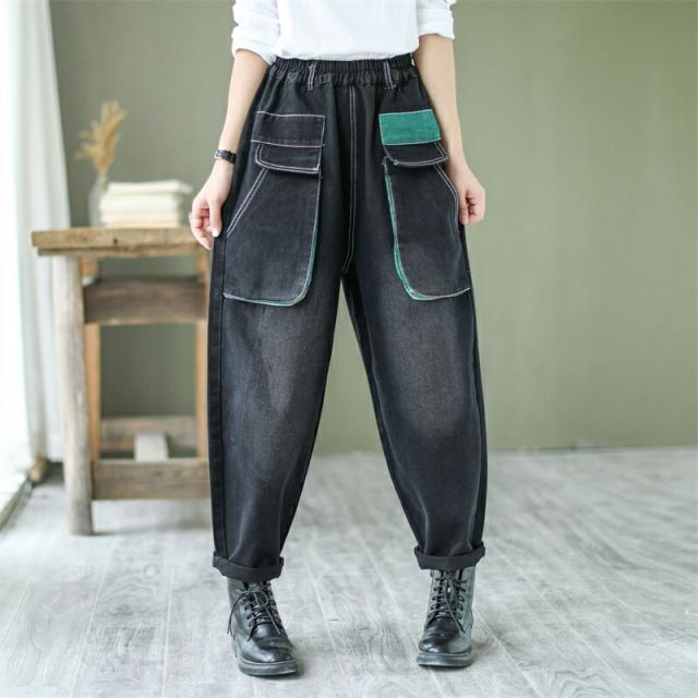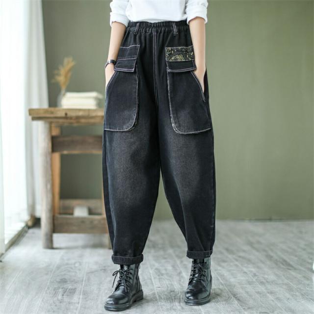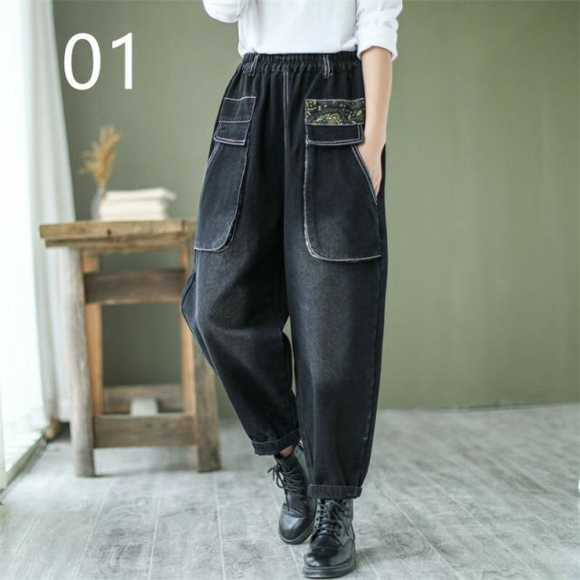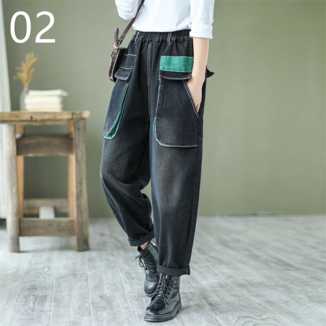 デニムパンツ股上深めパンツ ウエストゴム サルエル ジーパンロールアップ ワイドパンツ 大きいサイズジーンズ デニム ボーイフレンドデニム カジュアル パンツ ゆったりロング