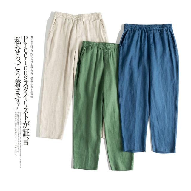 サルエルパンツリネンパンツ 無地 亜麻 タックリネンワイドパンツガウチョ 麻 亜麻 麻混 ウエストゴム ボトムス レディース ガウチョ 春 夏 秋