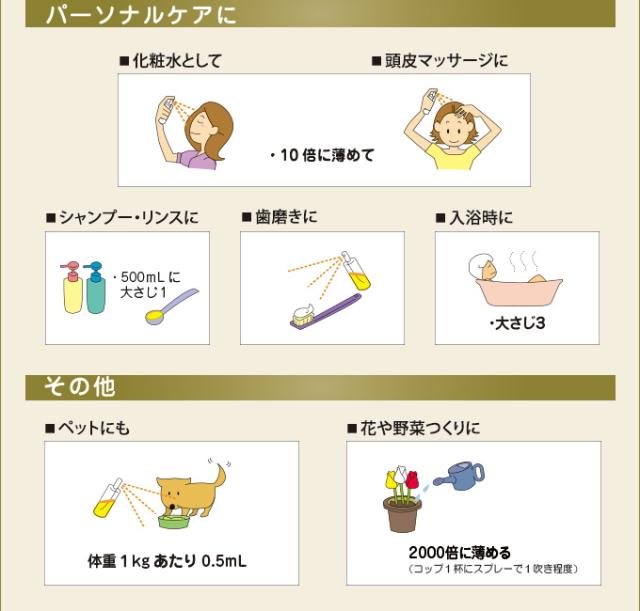 1日15〜30mLを目安に、原液のまま、またはジュース、お味噌汁、あらゆる料理に適量入れてお召し上がりください。