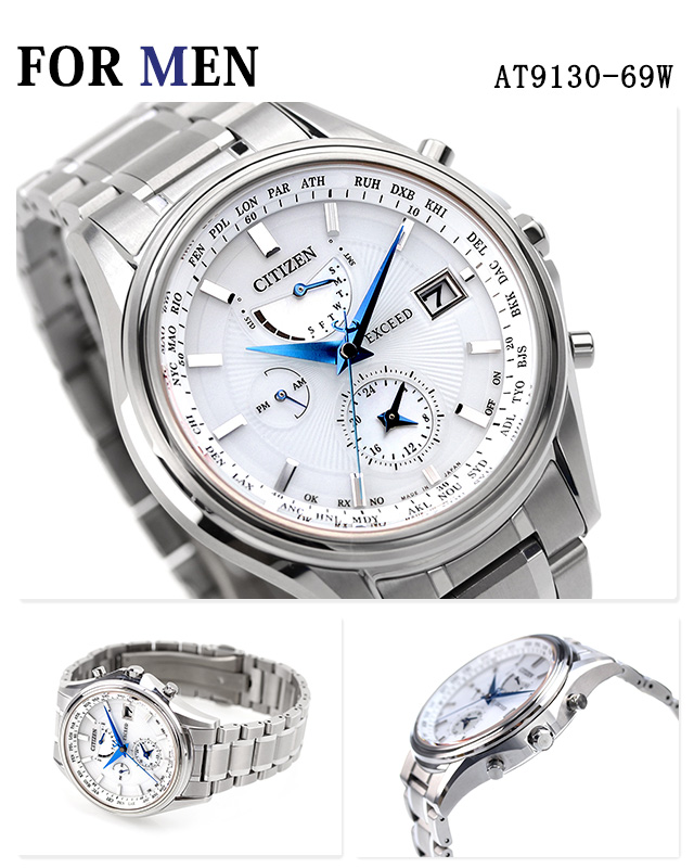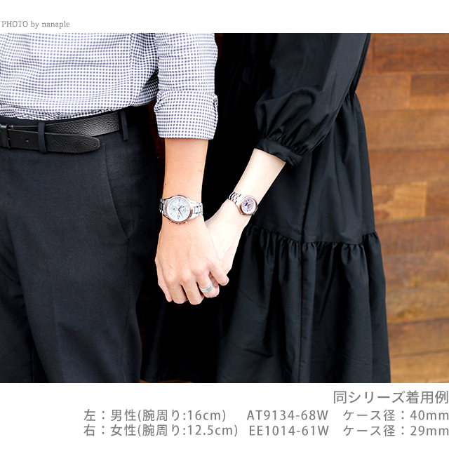正規品 7年保証キャンペーン 送料無料 ペアウォッチ シチズン エクシード エコ・ドライブ電波時計 45周年記念 ペアモデル 日本製 エコ・ドライブ電波 ペアウォッチ メンズ レディース 腕時計 pair-exceed26 CITIZEN EXCEED アナログ ◆確かな品質と洗練されたデザインによって唯一の価値を生み出すシチズン エクシードは、まさに「本物」を求める大人にふさわしい時計です。クオーツ時計では世界初のグランドコンプリケーションとして1999年に発売されたモデルをはじめ、歴史を彩るエポックメイキングなモデルへのオマージュを込めた、エコ・ドライブ電波時計です。クラシカルな丸型プッシュボタンを採用。ケースサイドに均一にザラツ研磨を当てることができ、ミラー仕上げの美しさを表現するとともに、視覚効果でケースを薄く見せます。ベゼルには、エクシード30周年モデルから継承した、過去・現在・未来を象徴する特徴的な3連リングを採用しました。プレゼントにもおすすめです。 メンズ品番:AT9130-69W レディース品番:EE1010-62W