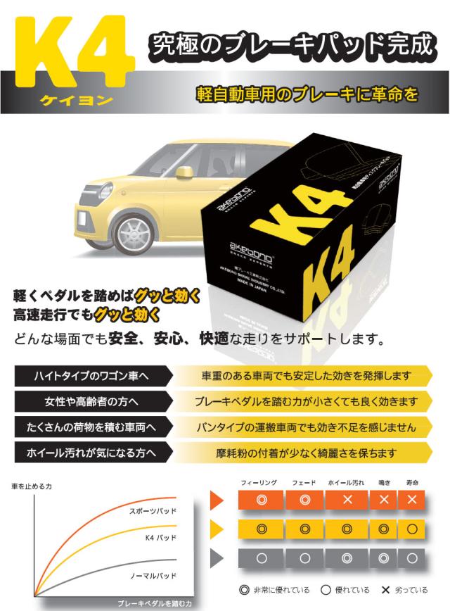 ミニキャブ U68T ブレーキパッド フロント アケボノK4 4枚セット 国産 akebono 軽自動車用 効き 良い K-616K H25.01〜H26.09