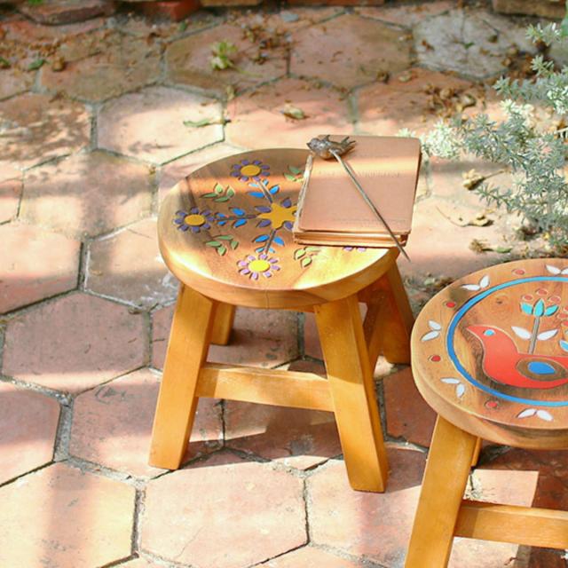 野原に咲いたような優しい雰囲気が可愛い花柄のアカシアスツールです。素朴な空気感がお部屋に広がります。