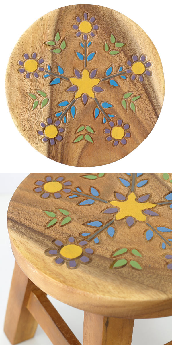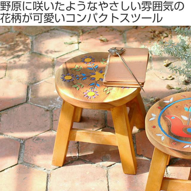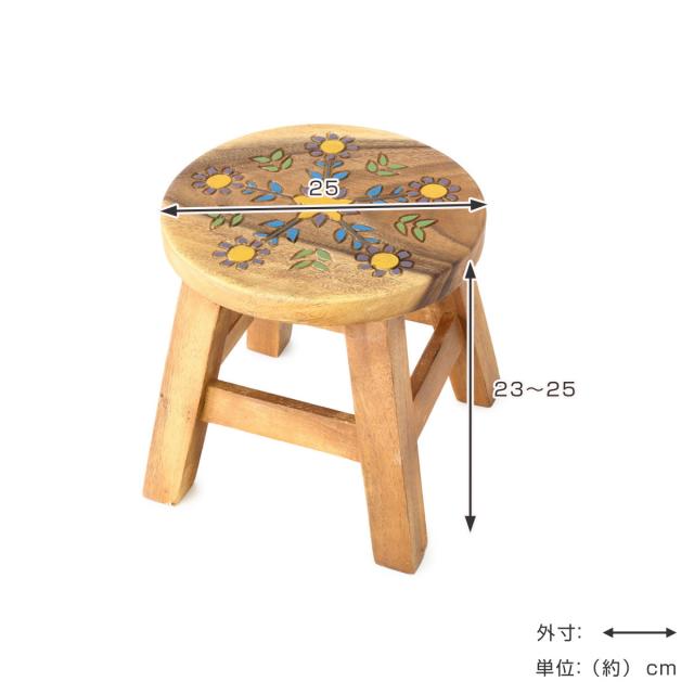 ラウンドスツール ブロッサム 木製 天然木 高さ23〜25cm ( 丸 スツール 子ども 椅子 キッズ チェア 小さい いす ウッドスツール アジアン風 アンティーク風 北欧風 アジアン家具 かわいい )