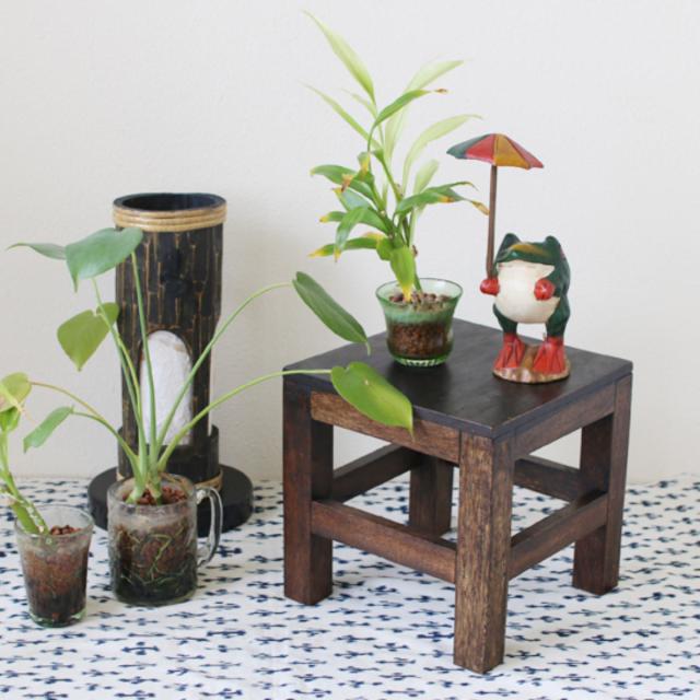 アジアンテイストの素朴な色合いが、どんなお部屋にも馴染みます。四角い形もシンプルで使いやすいです。プランターなどを置いてグリーンを楽しむのもおすすめです。