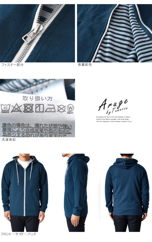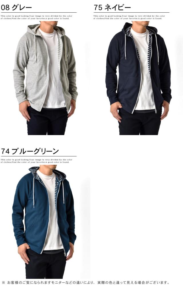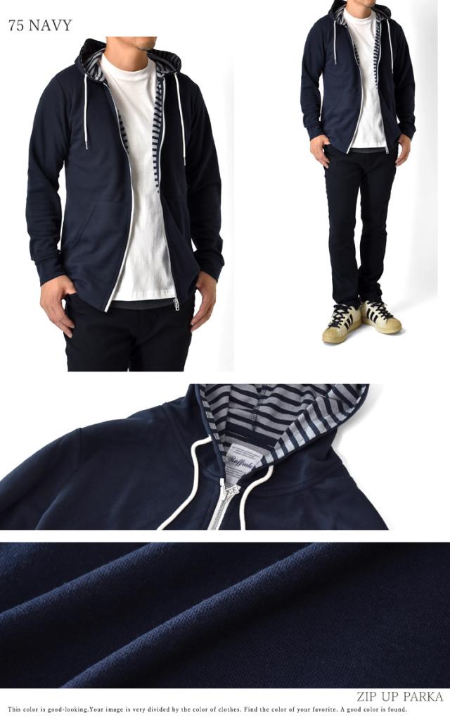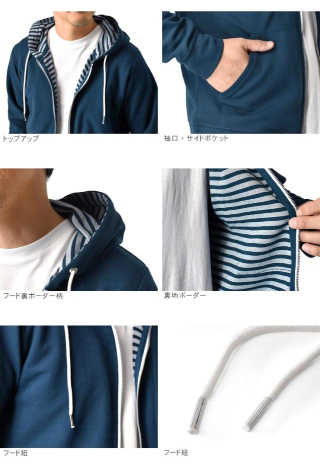 パーカー メンズ 長袖 裏ボーダー ジップアップ マリンパーカー【H5H】【送料無料】【ゆうパケット】【メンズ