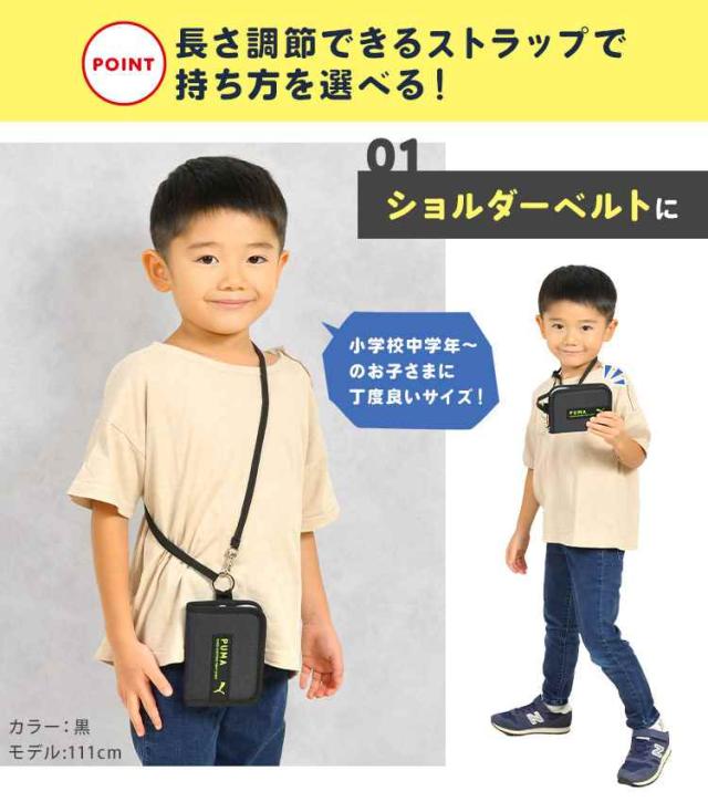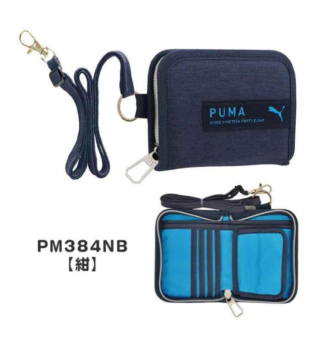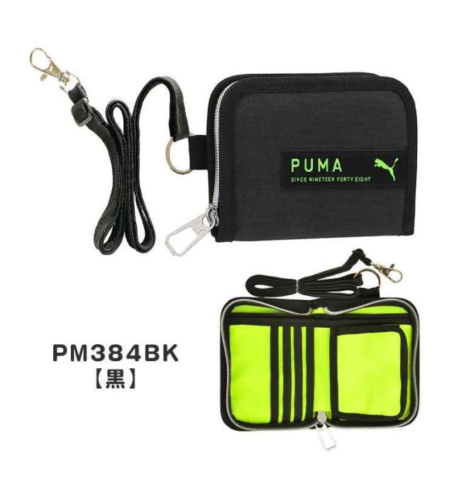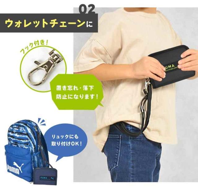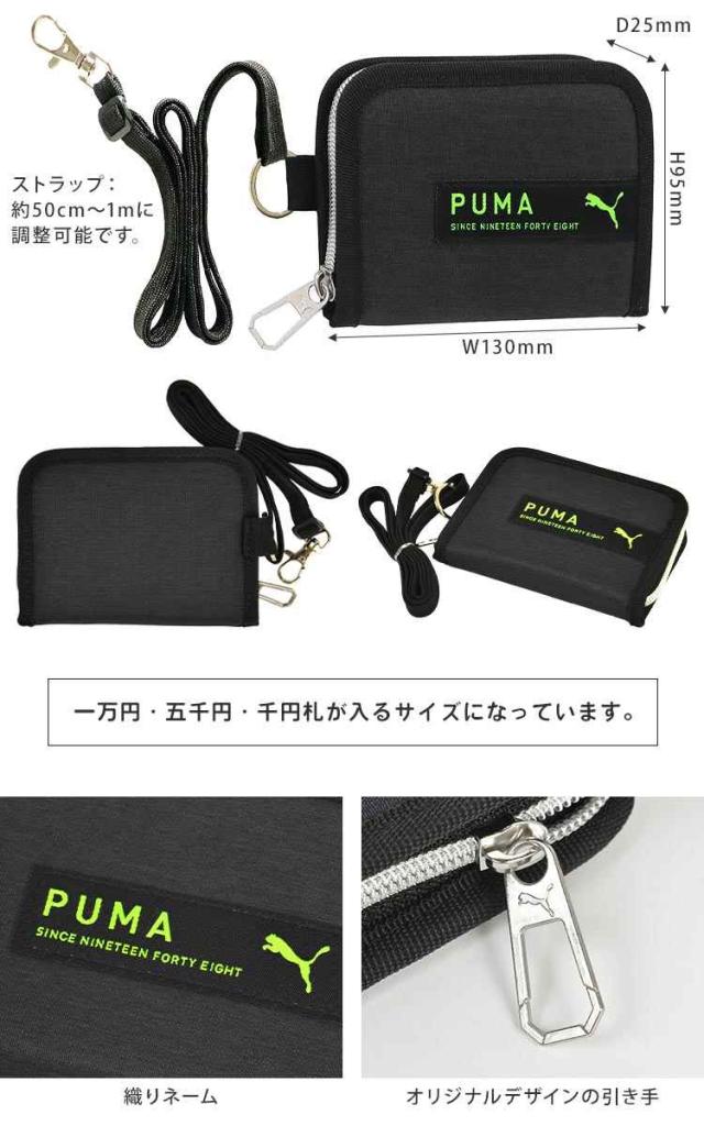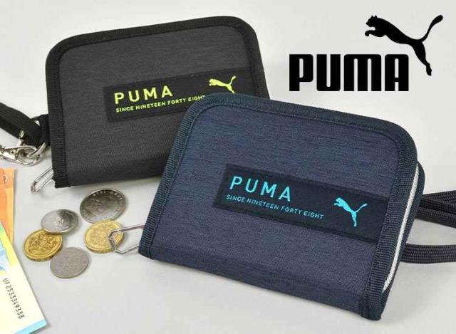 財布 男の子 小学生 子供 ひも付き キッズ 財布 PUMA プーマ こども ジュニア 男子 中学生 高校生 通学 二つ折り財布 ファスナー パスケース コインケース 小銭入れ カードケース ネックストラップ 黒 紺 ブラック ネイビー 無地 シンプル フットサル サッカー