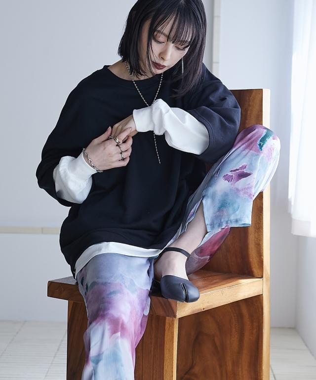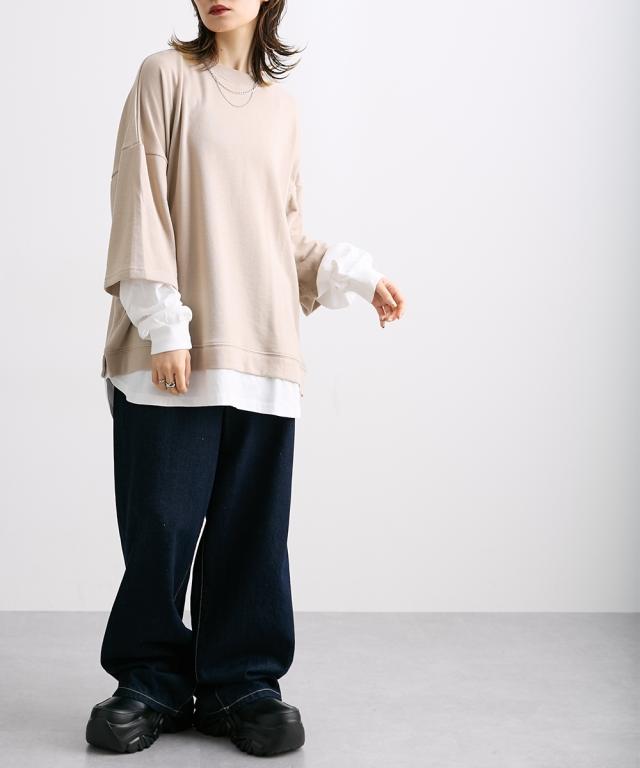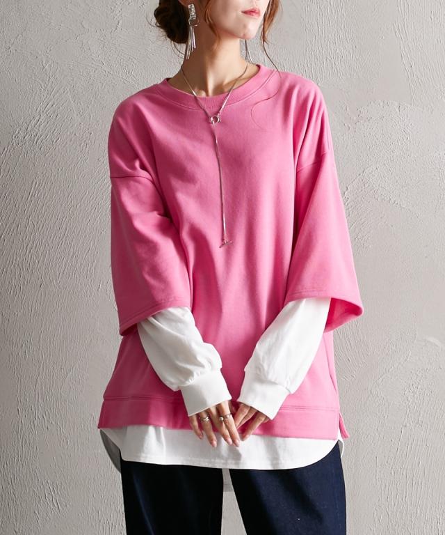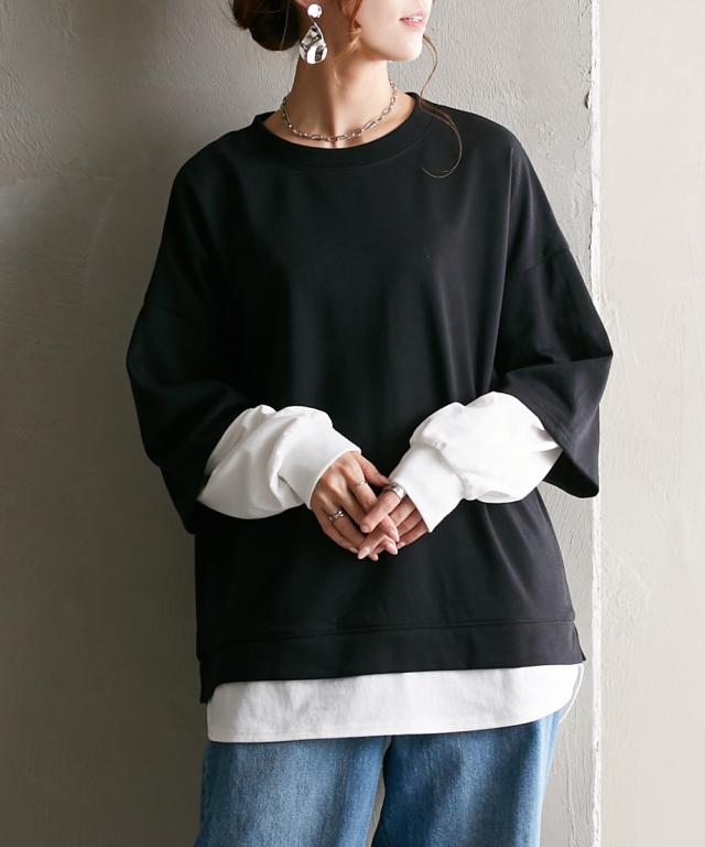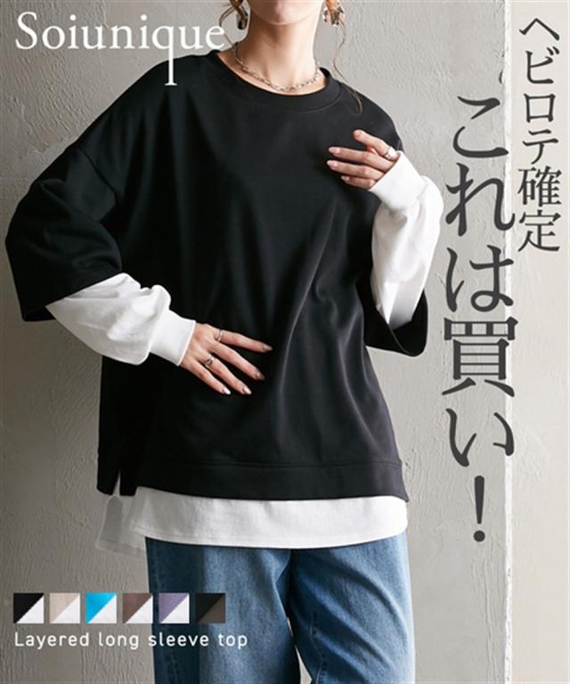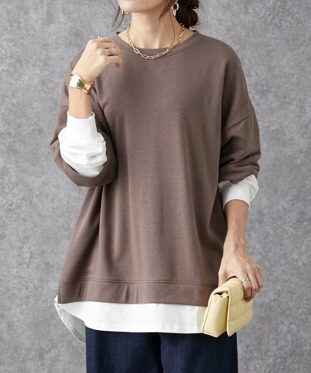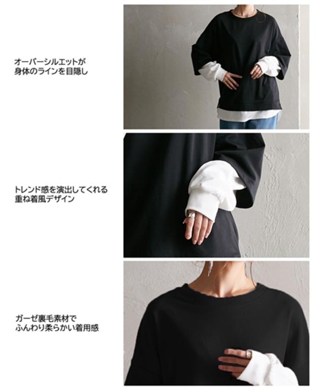 ガーゼ裏毛 重ね着風長袖トップス [Soiunique]