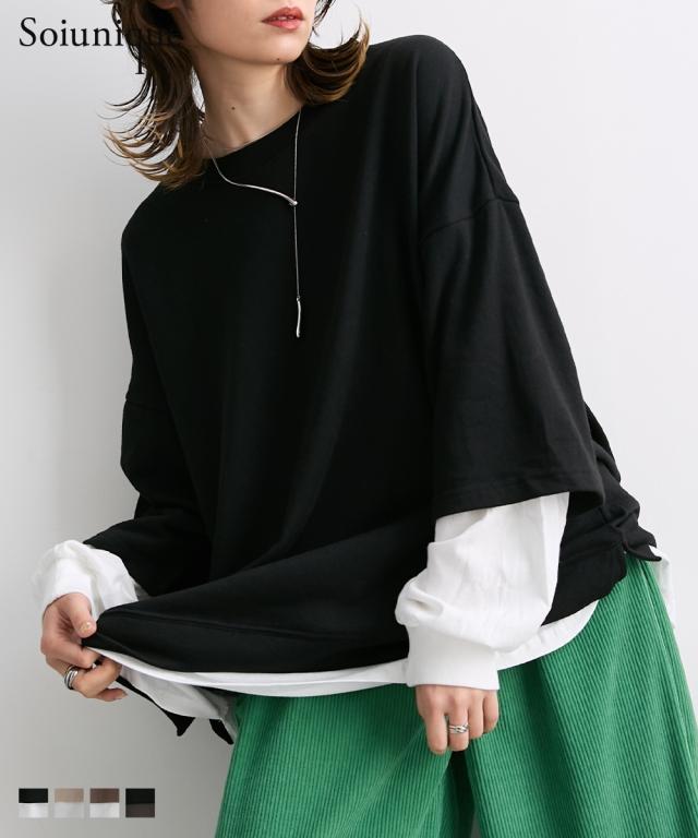 Tシャツ カットソー レディース ガーゼ裏毛 重ね着風 長袖 トップス Soiunique S/M/L/LL ニッセン nissen