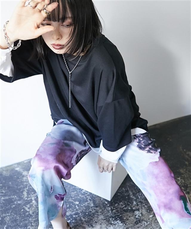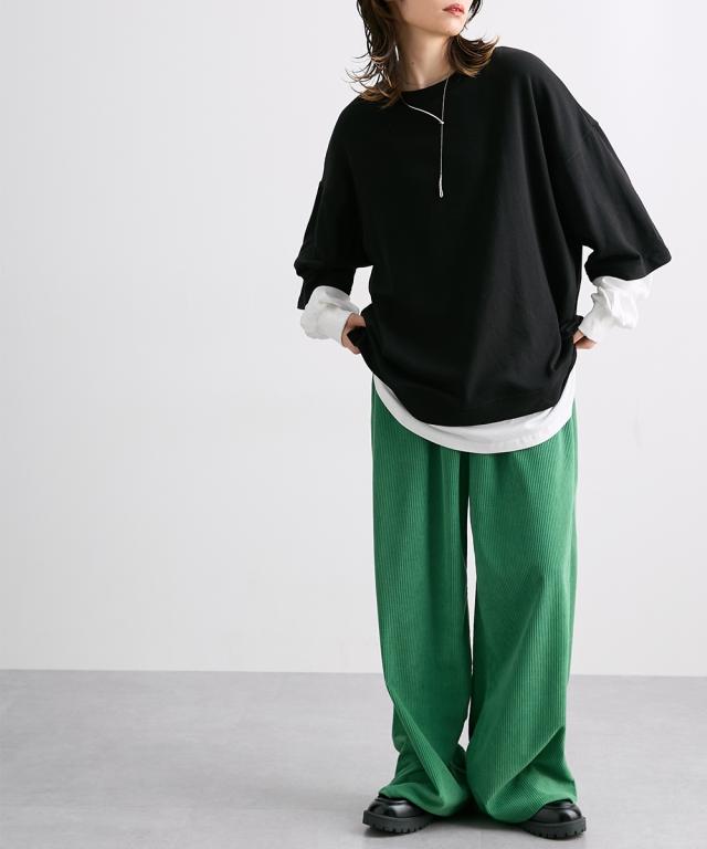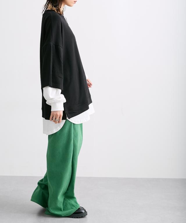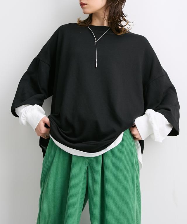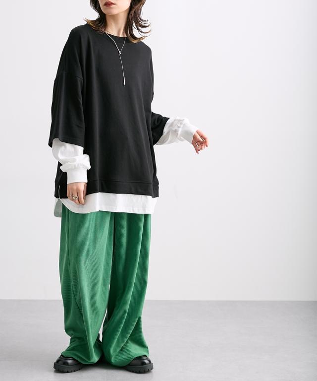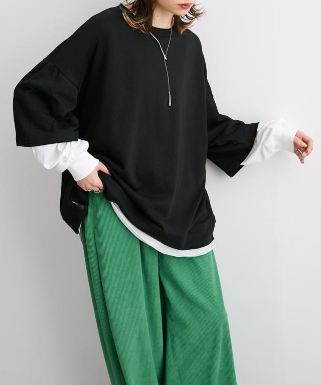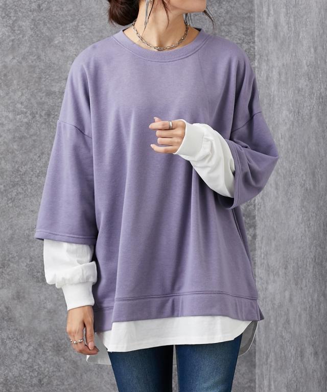 ガーゼ裏毛の重ね着風長袖トップス!シンプルな無地デザインながらも、トレンド感のある重ね着風で1枚着用していてもしっかりこなれ感。柔らかく触り心地のいいガーゼ裏毛素材が、ごわつき無くストレスフリーな着用感を発揮してくれます。どんなボトムスもしっかりマッチしてくれて、クールな印象にもカジュアルな印象にも仕上げてくれる万能アイテム!