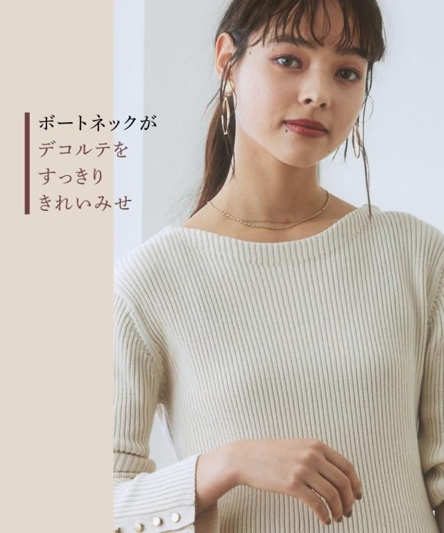 ニット セーター レディース UVカット綿混ボートネックリブ 冬 LL ニッセン nissen