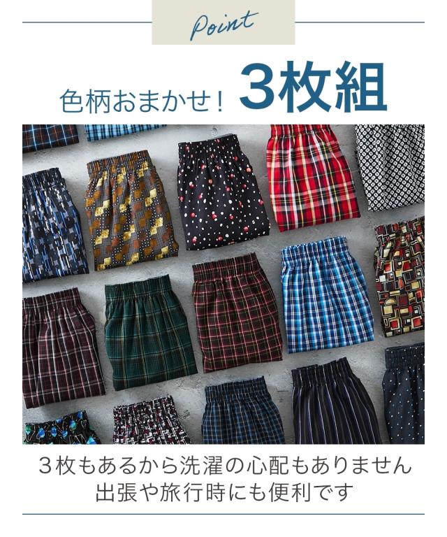 おまかせ福袋 綿100%前ボタン開きプリントロングトランクス3枚組